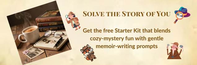 The Solve the Story of You Starter Kit helps you uncover clues in the cozy mysteries I write—and clues hidden in your own memories.